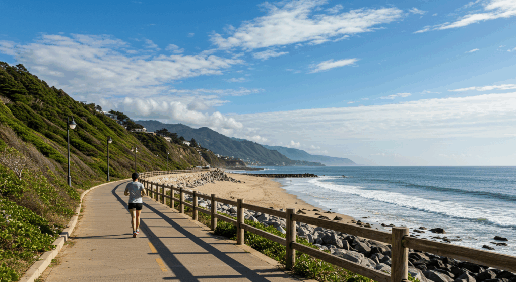 湘南海岸サイクリングロードは、茅ヶ崎を代表する絶景ランニングコースとして多くのランナーに愛され続けています。太平洋の美しい海景色を眺めながら走る爽快感は、他では味わえない特別な体験です。