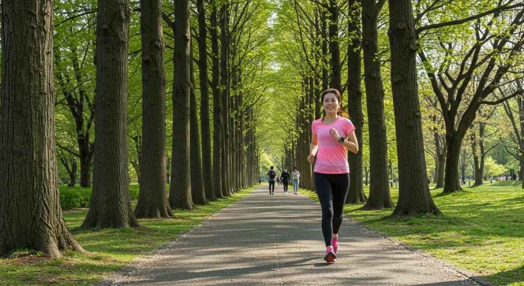 ランニングとウォーキングを組み合わせた運動方法も、野川公園では効果的に実践できます。初心者にとって、いきなり長距離を走り続けるのは負担が大きいため、ランニングとウォーキングを交互に行うことが推奨されています。30分間の運動として、ランニング5分とウォーキング3分を組み合わせたパターンから始めることで、心拍数の適切な管理と効果的な脂肪燃焼を実現できます。