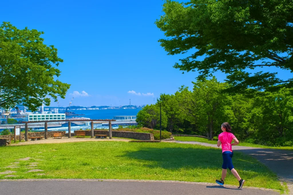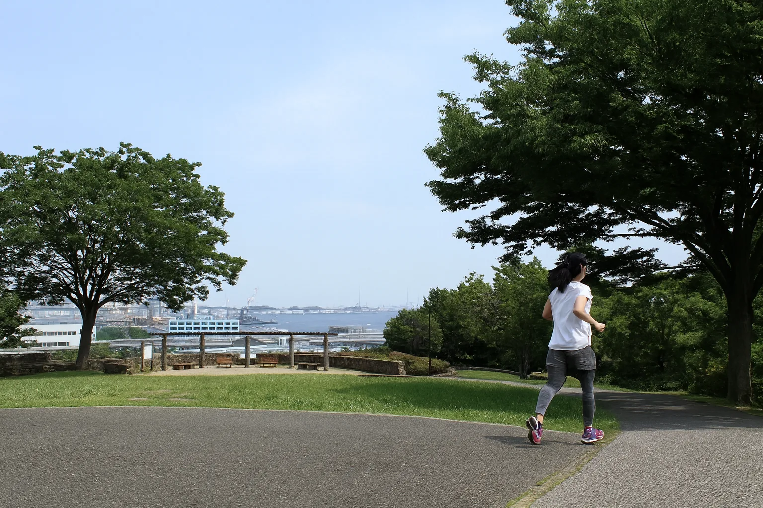 富岡総合公園には2つの魅力的な展望台があり、これらはジョギング中の休憩ポイントとして、また目標地点として多くのランナーに愛用されています。一つ目の「北台展望台」からは、みなとみらい21地区の現代的な都市景観を一望することができ、高層ビル群と海の景色が織りなすパノラマは、ランニングの疲れを癒してくれる素晴らしい眺望です。