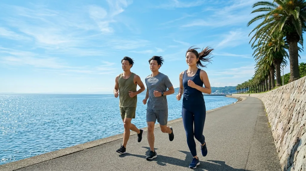 服装・シューズについては、海沿いのコースは風が強い日もあるため気温に合わせた服装選びが重要です。特に冬場は防風性の高いウェアが重宝します。シューズはクッション性の高いランニング専用シューズを選ぶことで、長距離でも膝や足首への負担を軽減できます。