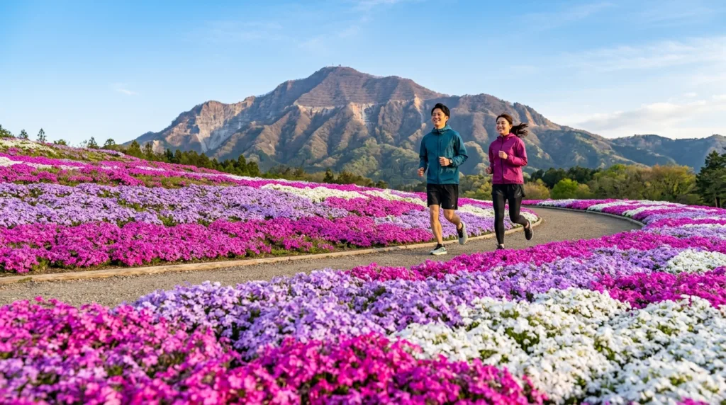 羊山公園の芝桜の丘は、埼玉県秩父市に位置する関東屈指の芝桜の名所であり、丘陵地形を活かしたジョギングスポットとしてもランナーから注目を集めています。2026年の芝桜まつりは4月3日から5月6日まで開催されており、4月20日時点でも見ごろが続いている状況です。秩父の自然と絶景の中を走り抜ける体験は、観光とフィットネスを両立させたい方にとって理想的なプランとなるでしょう。