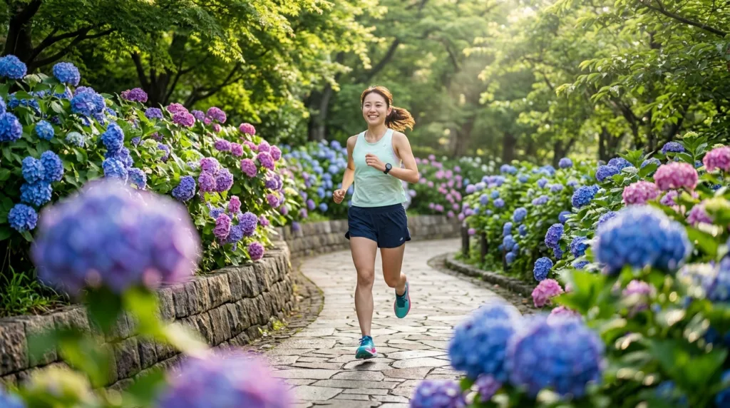 ジョギングを楽しみたい方にとっては、6月の早朝が最適です。気温が比較的低く、湿度も朝のうちはそれほど高くありません。咲き誇るアジサイを横目に走る体験は、梅雨時期ならではの特別なランニングタイムとなります。